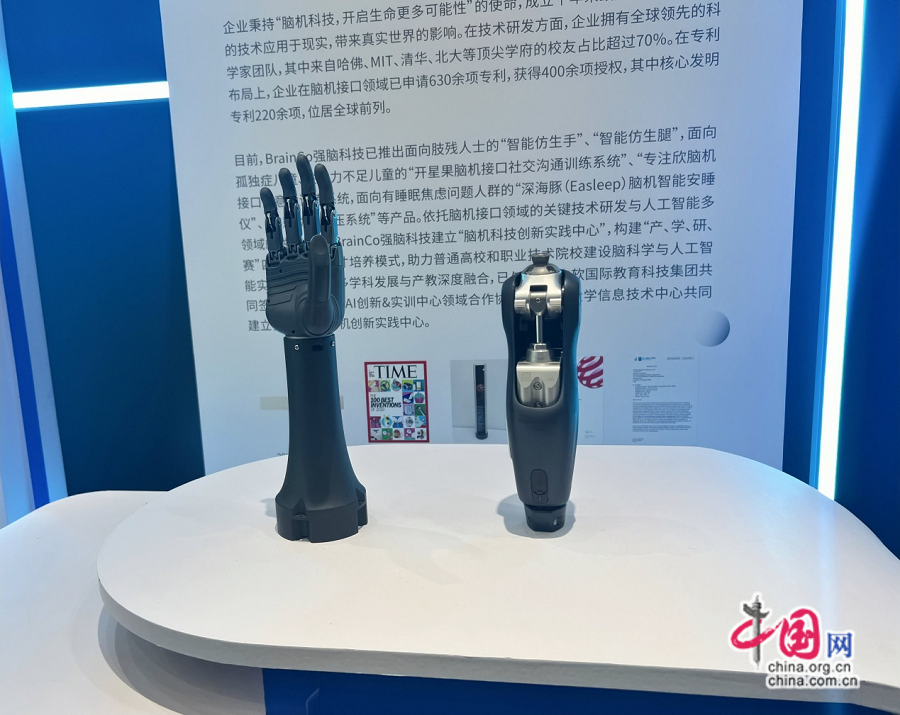 圖為面向肢體障礙人士的“智能仿生手”和“智能仿生腿”。中國(guó)網(wǎng)徐林/攝影