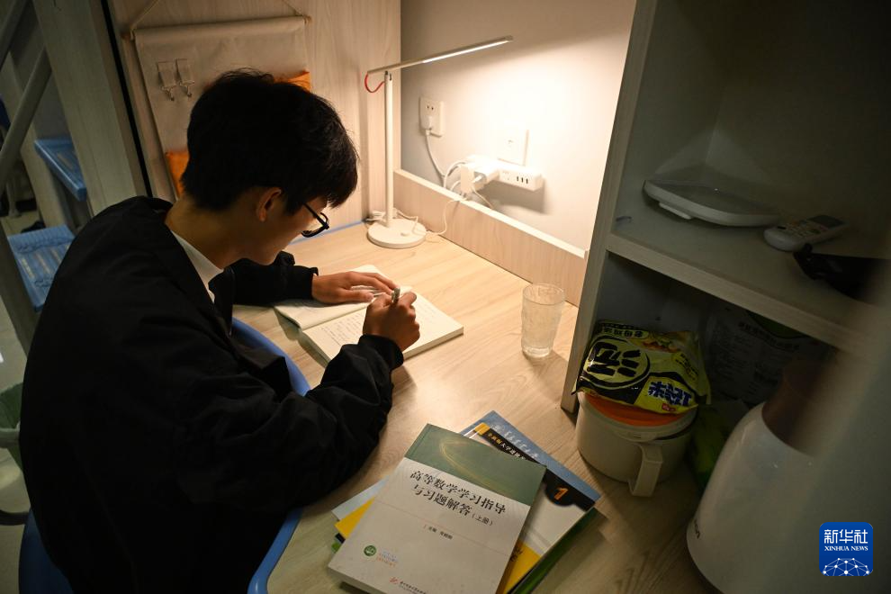 10月11日,孟成在青島農(nóng)業(yè)大學(xué)學(xué)生宿舍內(nèi)學(xué)習(xí)。