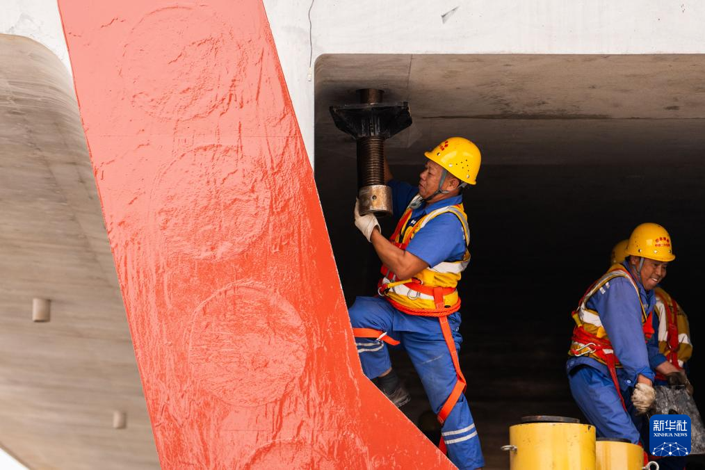 10月13日,中鐵二十五局工人在邵永高鐵跨蘆洪江特大橋架梁施工現(xiàn)場(chǎng)作業(yè)。