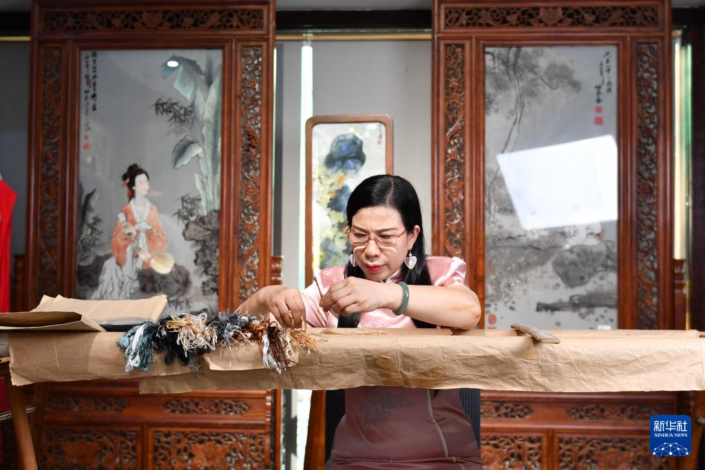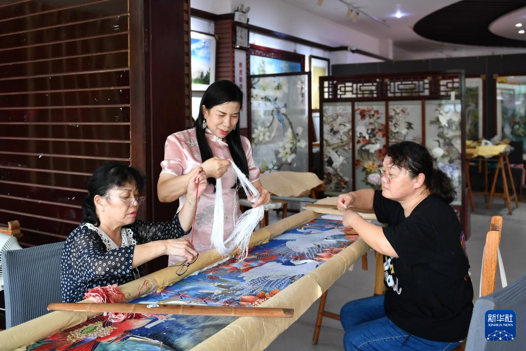 多年來,江再紅走進大中小學(xué)授藝,帶徒傳承,積極推廣湖湘文化和非遺技藝,培養(yǎng)大批湘繡傳人……江再紅和團隊嘗試通過數(shù)字化設(shè)計、跨界聯(lián)名、沉浸式體驗等形式,探索湘繡的創(chuàng)新發(fā)展之路。