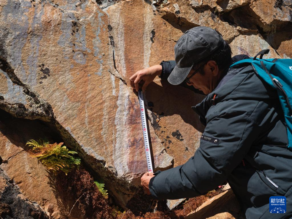 10月21日,陳雪松測(cè)量海子山老林溝拉托扎巖畫(huà)信息。