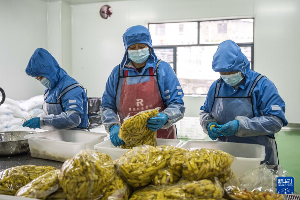 10月23日,工人在云南省昭通市鎮(zhèn)雄縣五德鎮(zhèn)的赤水源綠色食品加工產(chǎn)業(yè)園竹筍生產(chǎn)車(chē)間內(nèi)分裝腌料。