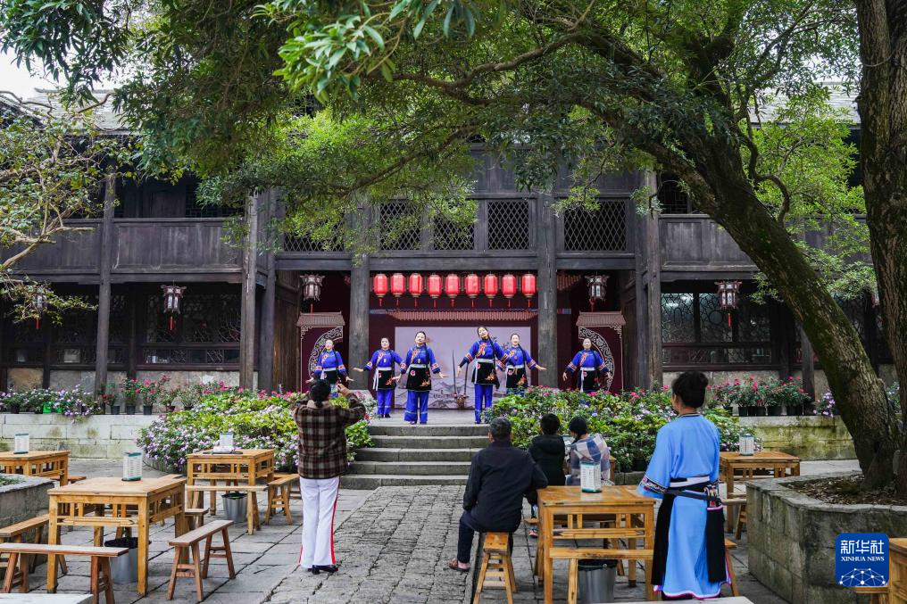 10月24日,人們在貴州安順天龍屯堡古鎮(zhèn)觀看演出。