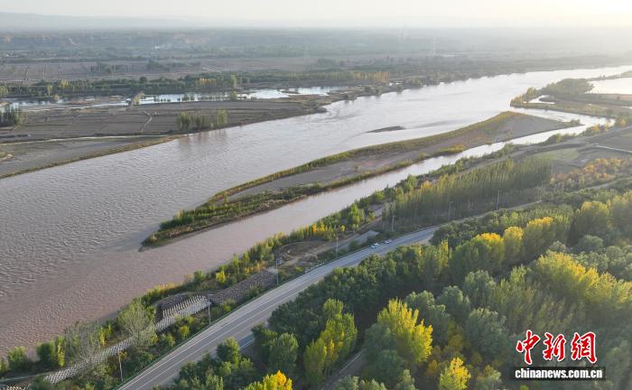 10月27日,航拍黃河寧夏中衛(wèi)段。金秋時(shí)節(jié),寧夏中衛(wèi)市黃河岸邊秋意盎然,金黃的樹葉與黃河交相輝映,共同勾勒出一幅美好的秋日畫卷。(無人機(jī)照片)中新社記者 于晶 攝