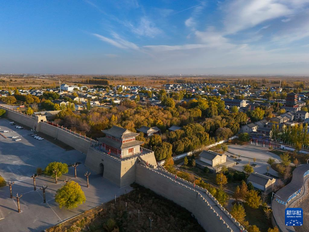 這是吳俊亮出生長(zhǎng)大的村莊——新疆察布查爾錫伯自治縣孫扎齊牛錄鎮(zhèn),也是錫伯古城景區(qū)所在地(10月24日攝,無(wú)人機(jī)照片)。