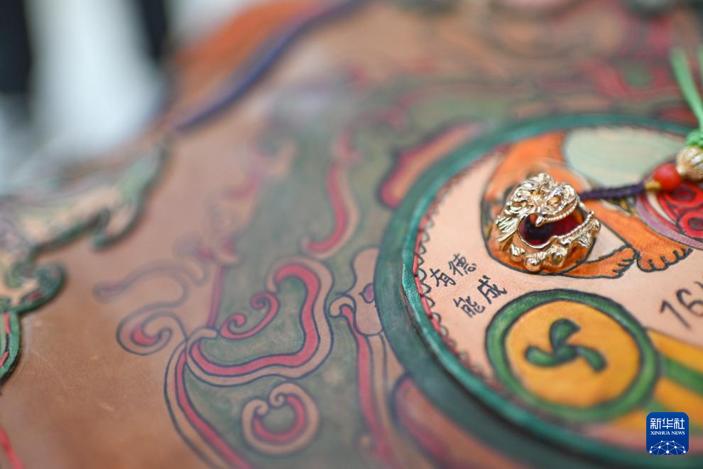 這是吳俊亮的徒弟姜凱文手工制作的一款皮質(zhì)箭囊(10月23日攝)。