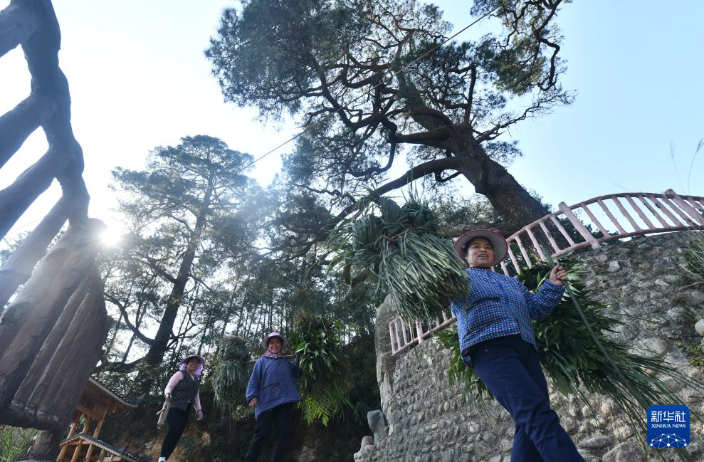 在廣西柳州市融水苗族自治縣安太鄉(xiāng)元寶村,勞作歸來的村民從樹下經(jīng)過(2025年3月20日攝)。