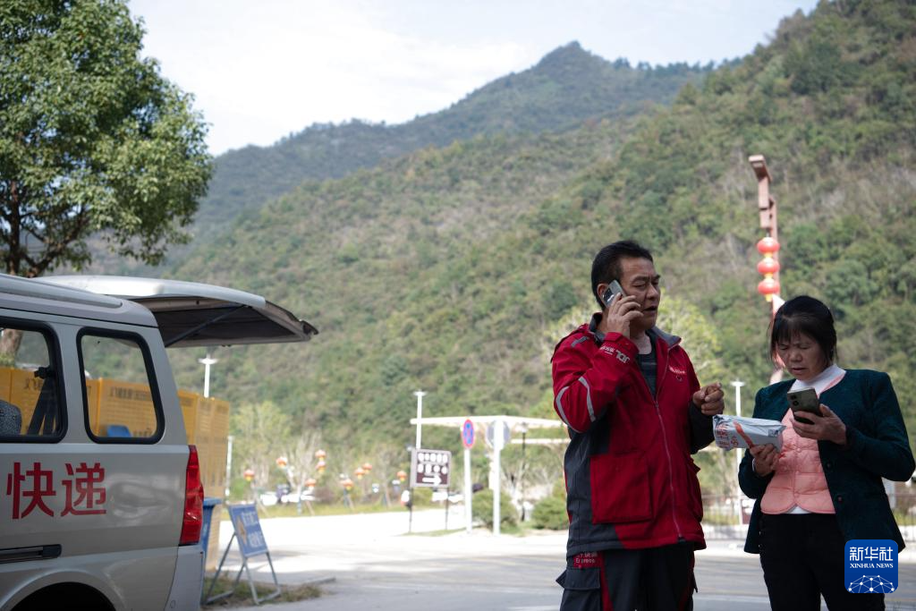 10月27日,在安徽省池州市石臺縣大演鄉(xiāng),檀世旺給村民送快遞。
