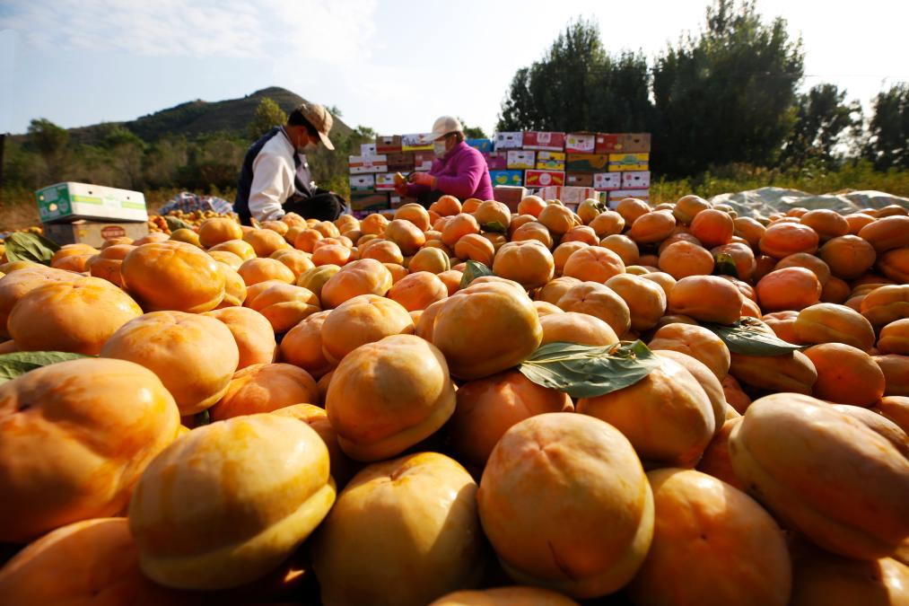 在保定市滿城區(qū)神星鎮(zhèn)果品交易市場,磨盤柿堆積如山。新華社記者 鄒尚伯 攝