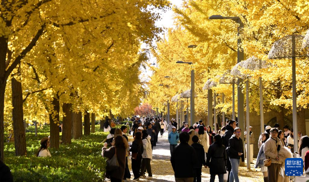 深秋時節(jié),北京市街頭和公園內(nèi)的銀杏等樹木掛滿黃葉,濃濃的秋色吸引大批市民踏秋賞景。