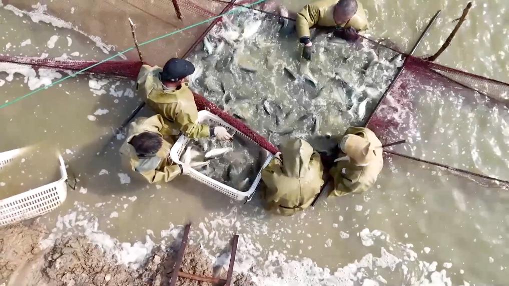 近日,在山東省鄆城縣張營(yíng)街道現(xiàn)代農(nóng)業(yè)科技示范園內(nèi),400多畝生態(tài)養(yǎng)殖水面迎來(lái)淡水鱸魚(yú)集中收獲期。昔日閑置的塌陷荒地,如今成為“致富塘”。