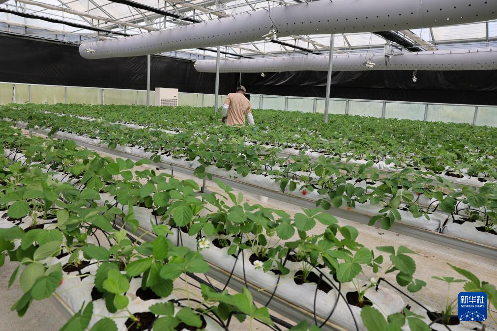 這是11月3日在文萊斯里巴加灣市郊一處農(nóng)業(yè)科技產(chǎn)業(yè)園拍攝的運(yùn)用中國農(nóng)業(yè)技術(shù)和設(shè)備培育出的草莓。