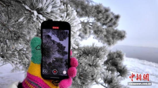 游客拍攝呼瑪霧凇美景。 張宏宇 攝