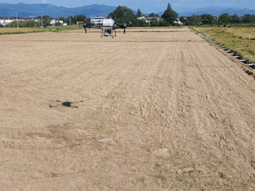 植保無(wú)人機(jī)在空中為一片麥田施肥