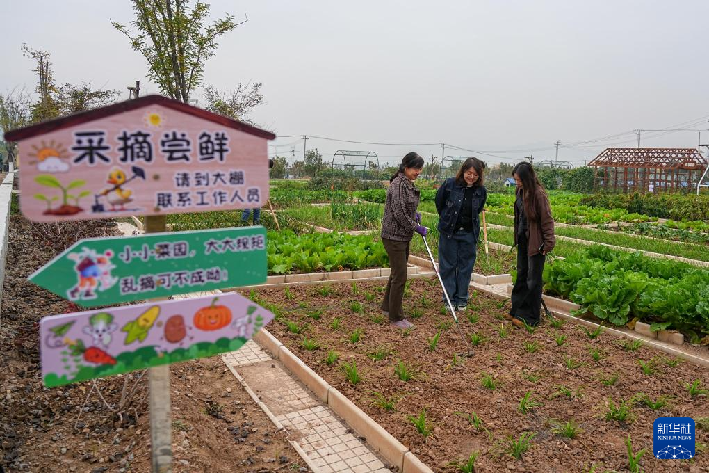 11月7日,游人在雙泉莊村民宿片區(qū)共享菜園內(nèi)體驗蔬菜種植。