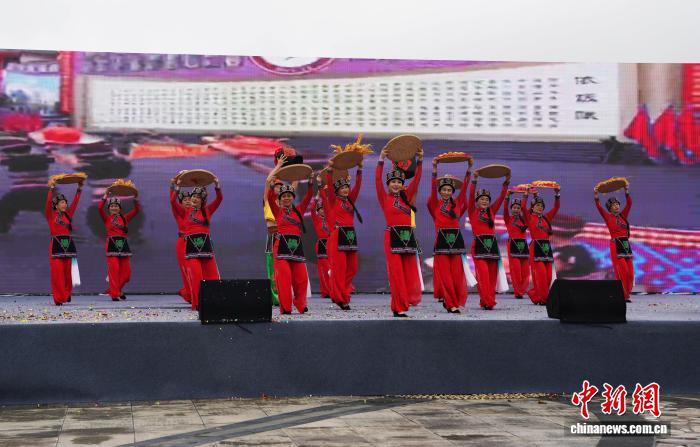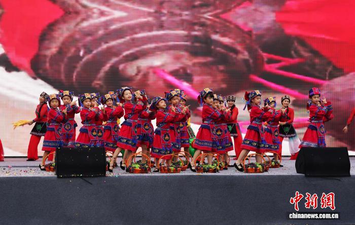 11月8日,中國唯一的仫佬族自治縣——廣西河池市羅城仫佬族自治縣舉辦傳統(tǒng)節(jié)日依飯節(jié),當(dāng)?shù)孛癖娚碇褡宸?,載歌載舞,展示仫佬族民俗風(fēng)情。依飯節(jié)有500余年歷史,是仫佬族民眾感恩還愿、慶祝豐收的傳統(tǒng)節(jié)日。圖為民俗表演現(xiàn)場。中新社記者 黃艷梅 攝