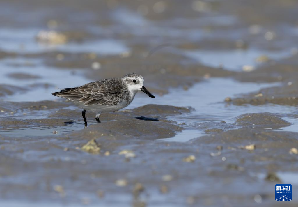 近日,在福建省泉州晉江圍頭灣,觀鳥愛好者發(fā)現(xiàn)勺嘴鷸的蹤跡。