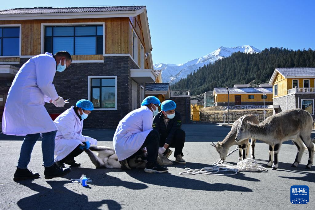 11月10日,在救護(hù)繁育站,工作人員為巖羊打疫苗。