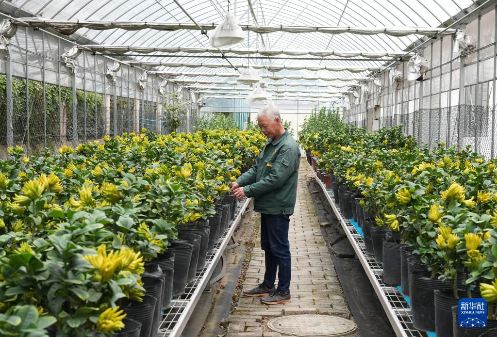 11月11日,在位于婺城區(qū)白龍橋鎮(zhèn)的一家佛手種植企業(yè),工作人員在整理佛手盆栽。