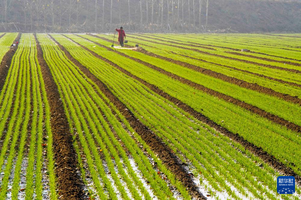 11月11日,河北省遵化市東新莊鎮(zhèn)農(nóng)民給冬小麥澆水。