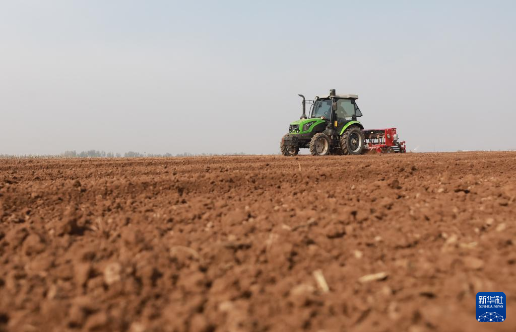 11月11日,農(nóng)民駕駛農(nóng)機(jī)在河南省焦作市溫縣黃河灘區(qū)播種小麥。