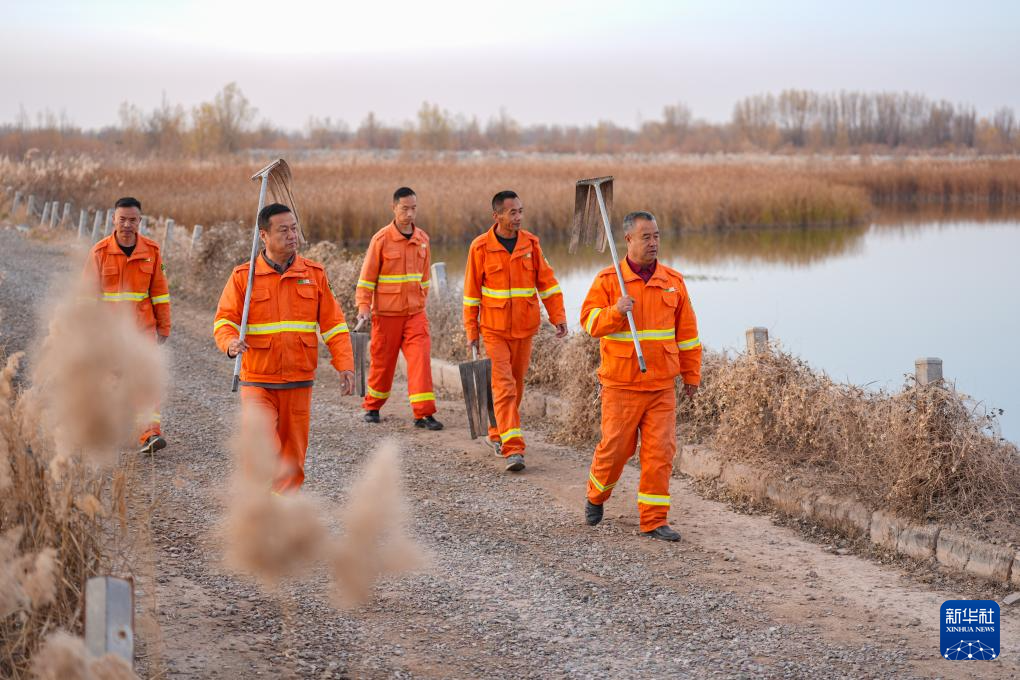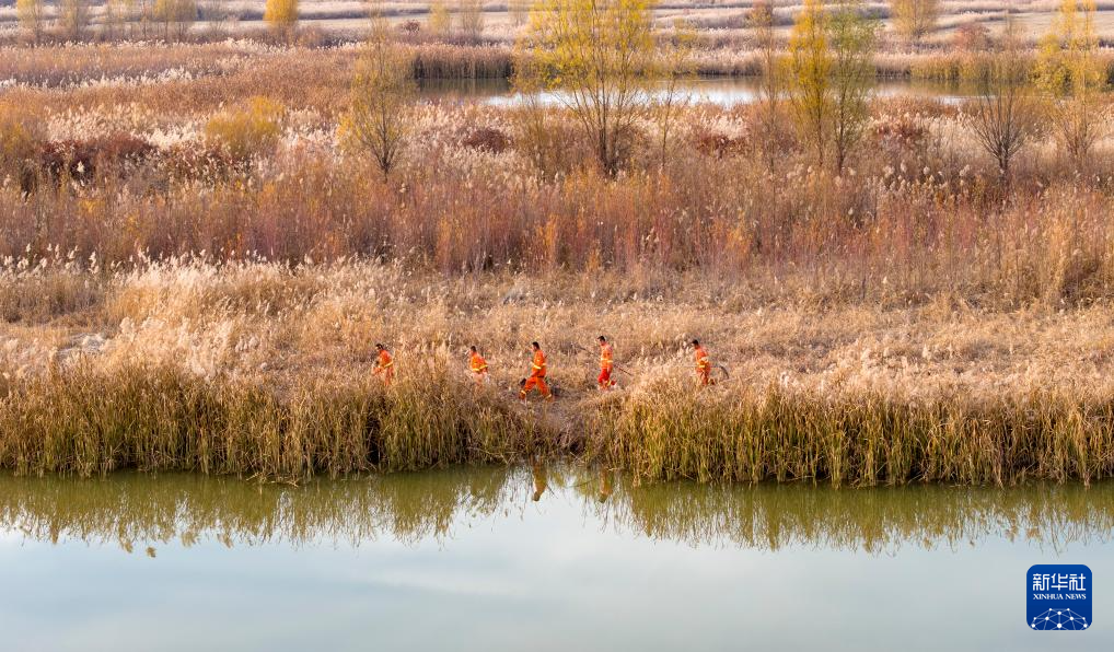 11月11日,工作人員在寧夏平羅天河灣國(guó)家濕地公園內(nèi)巡查。