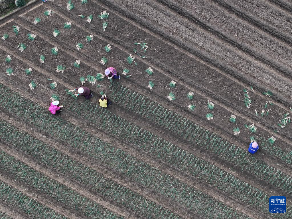 柳州市柳江區(qū)三都鎮(zhèn)龍興村村民在種植香蔥(無(wú)人機(jī)照片,11月11日攝)。