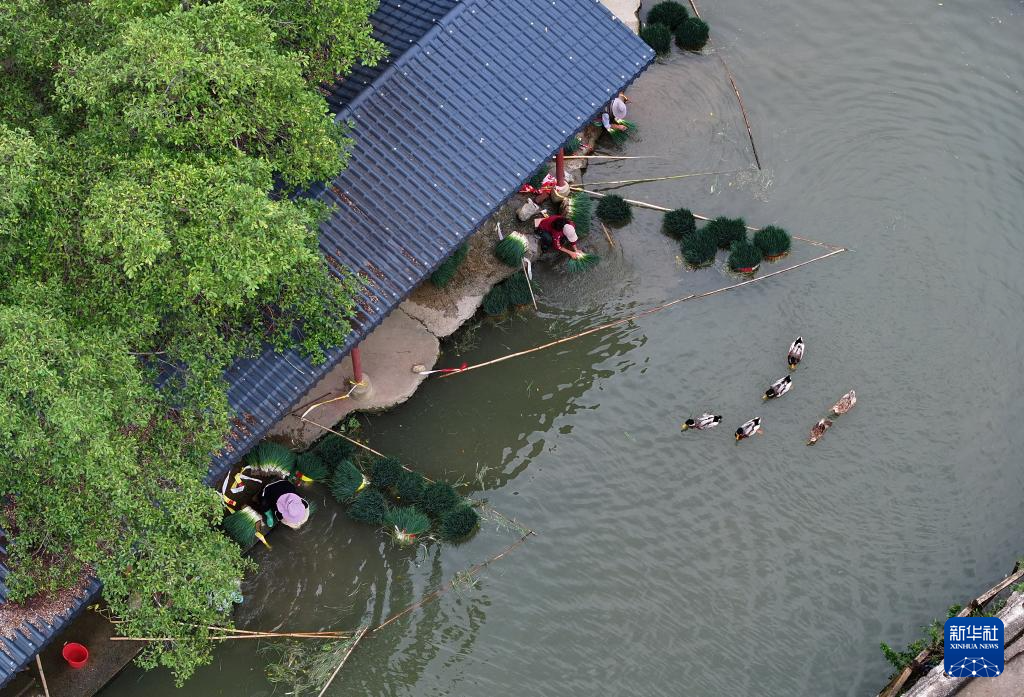 柳州市柳江區(qū)三都鎮(zhèn)覺山村村民們?cè)谛『永锵聪闶[(無(wú)人機(jī)照片,10月21日攝)。