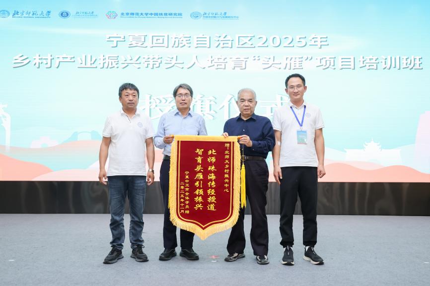 寧夏“頭雁”學(xué)員代表向北京師范大學(xué)中國鄉(xiāng)村振興與發(fā)展研究中心贈予錦旗