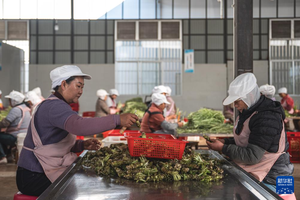 11月18日,工人在云南省保山市隆陽(yáng)區(qū)板橋鎮(zhèn)的保山市山葵實(shí)業(yè)開(kāi)發(fā)有限責(zé)任公司加工車間內(nèi)初加工山葵葉柄。