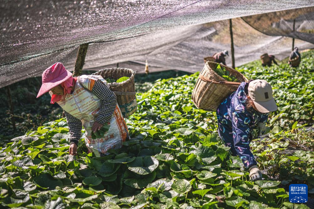 11月17日,農(nóng)民在云南省保山市隆陽(yáng)區(qū)楊柳白族彝族鄉(xiāng)冷水村一處山葵種植基地采摘山葵。