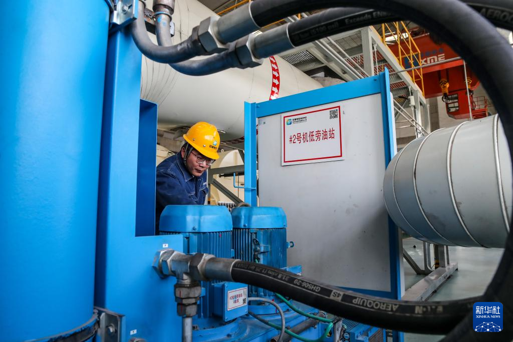 11月19日,工作人員在甘肅電投常樂電廠汽機主廠房內(nèi)巡檢。