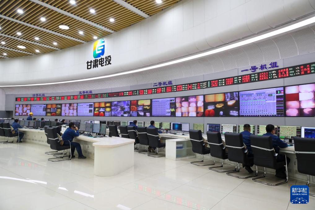 11月19日,在甘肅電投常樂電廠集控室,工作人員監(jiān)測火電機組運行狀況。