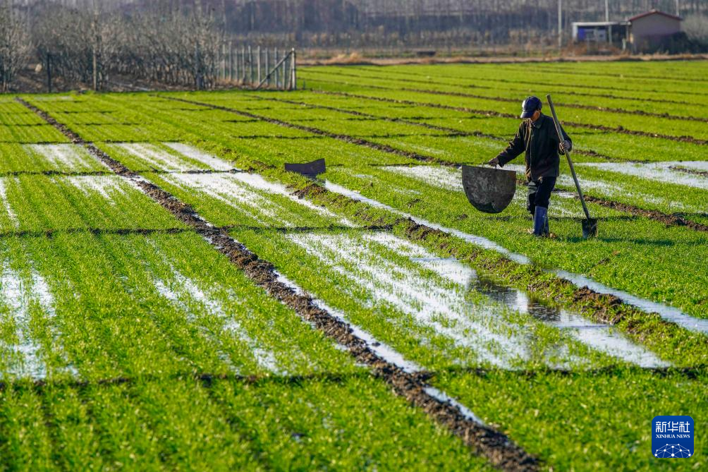 11月19日,河北省遵化市團(tuán)瓢莊鎮(zhèn)農(nóng)民給冬小麥澆水。
