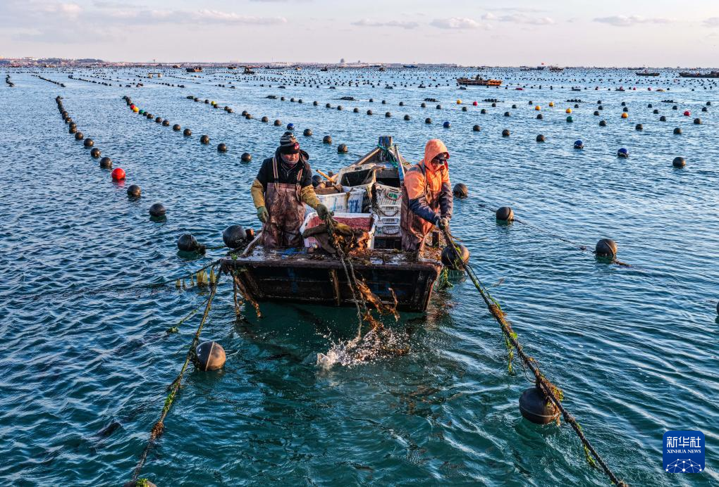 眼下,山東省榮成市海帶播苗作業(yè)全面展開,養(yǎng)殖工人們抓緊時間進(jìn)行夾苗、播苗等作業(yè)。