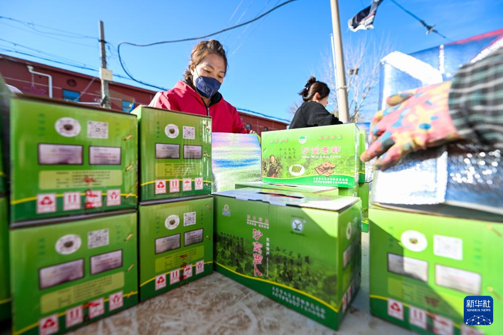 11月20日,在天津市西青區(qū)辛口鎮(zhèn),農(nóng)民在打包準(zhǔn)備發(fā)運(yùn)的沙窩蘿卜。