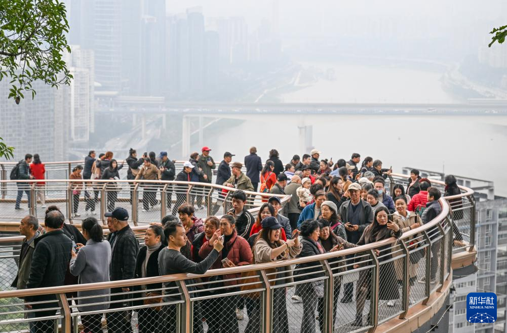 11月24日,人們?cè)谥貞c半山崖線鵝嶺棧橋觀光。